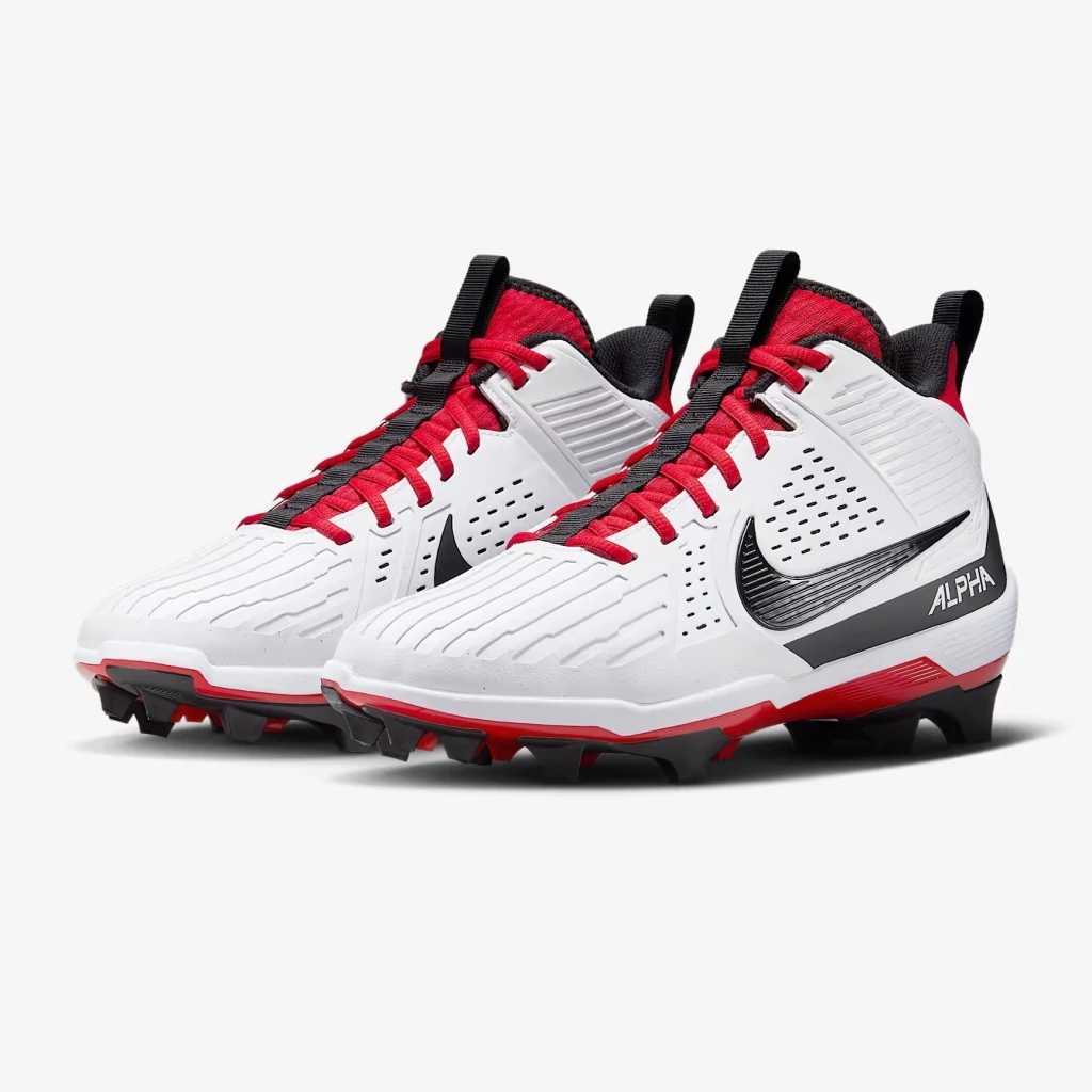 The Alpha Menace Strong offers ideal traction in the trenches, regardless of weather or wayward field conditions. An all-new Alpha plate made of mixed sticky rubber combines with soft foam to help unleash your wrath at the snap or wherever there is ground to be staked.